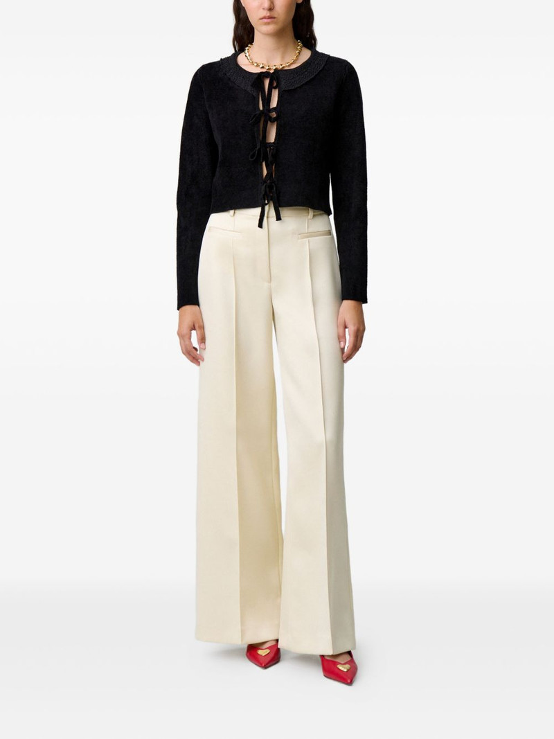 Frilled-Trim Flared-Leg Mid-Rise Stretch-Knit Trousers
