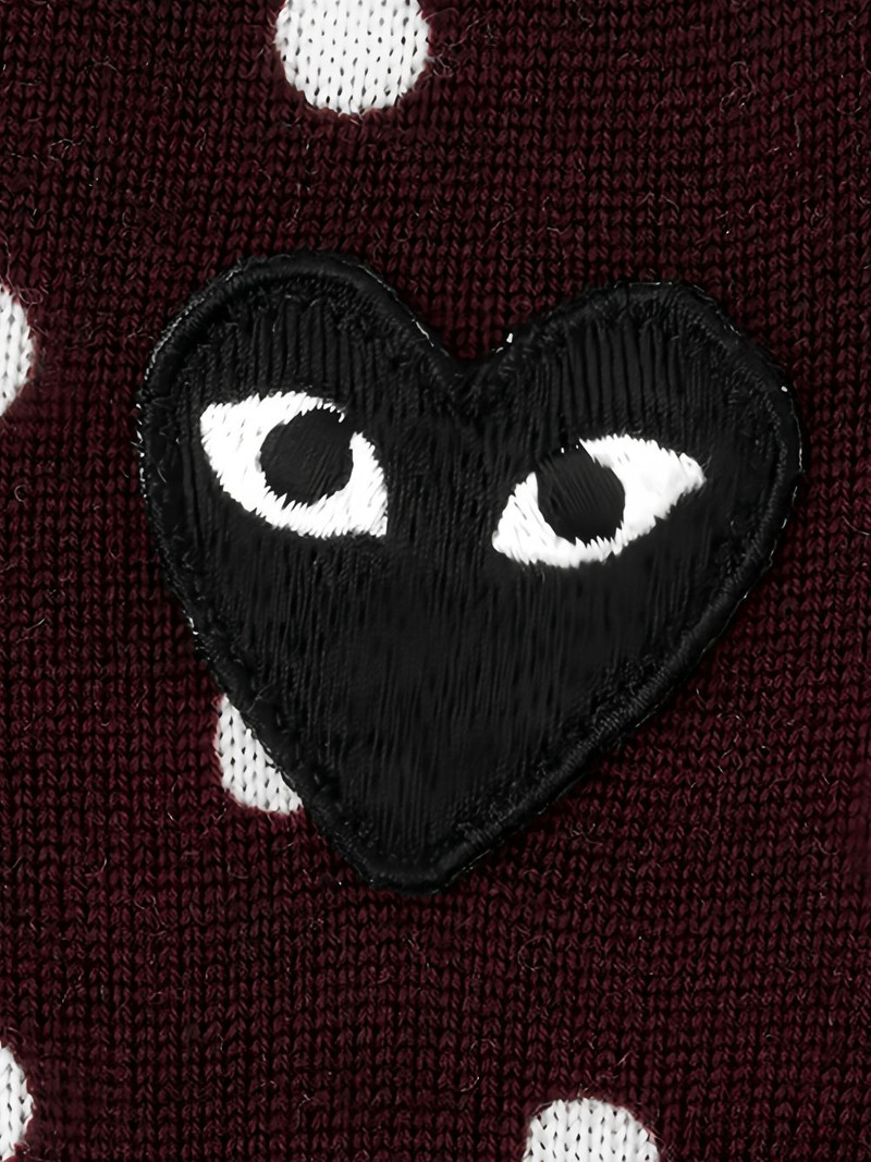 Comme des Garçons Play is the casual, playful offshoot of Rei Kawakubo’s avant-garde fashion house, Comme des Garçons. Launched in 2002, the line is instantly recognizable by its iconic heart-with-eyes logo, designed by Polish artist Filip Pagowski. Unlike the brand’s experimental runway collections, Play focuses on everyday essentials—striped Breton shirts, graphic tees, hoodies, and sneakers—infused with subtle twists that blur the line between minimalism and whimsy. Often produced in collaboration with brands like Converse, Comme des Garçons Play has become a symbol of understated cool, offering accessible pieces that embody both high-fashion heritage and approachable, youthful energy.