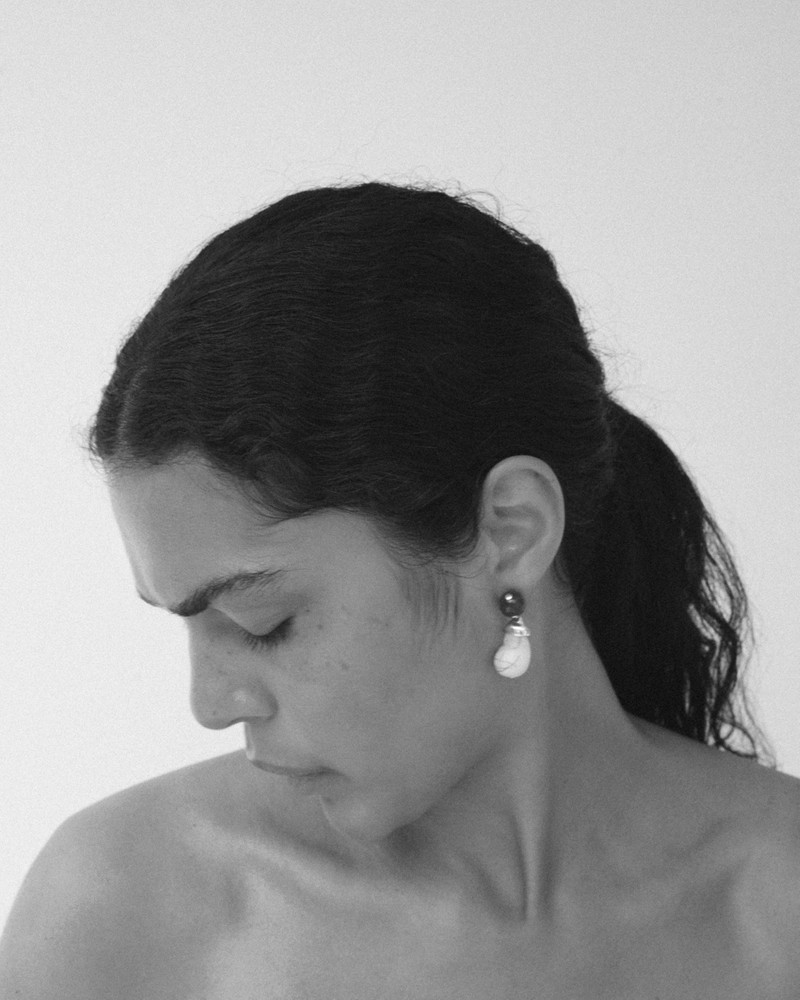 Gold-plated recycled silver, cubic zirconia and pearl earrings White