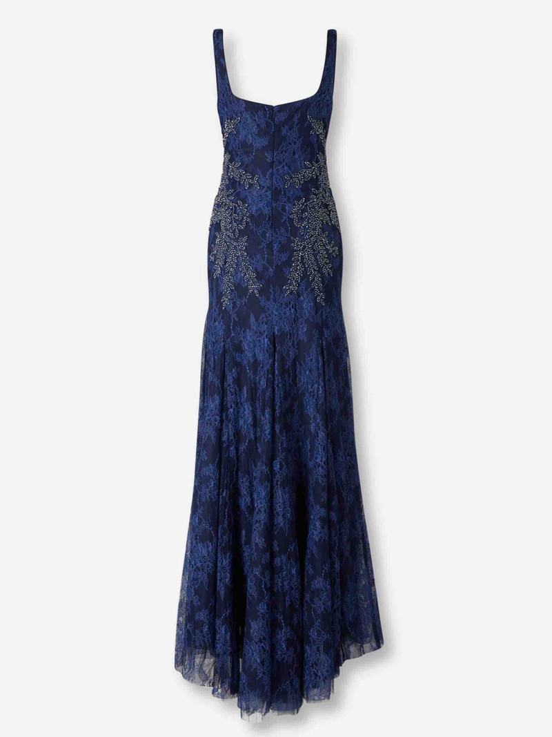 Costarellos Embellished V-neck Tulle Maxi Dress