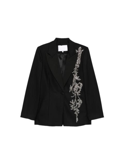 Meena Floral-Appliqued Crepe Cape-Effect Column Gown yellow
