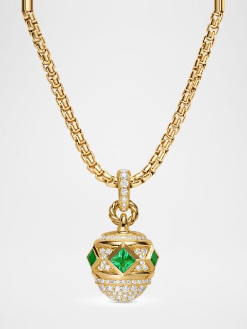 Renaissance Pave Amulet with Emeralds and Diamonds in 18K Gold, 26mm