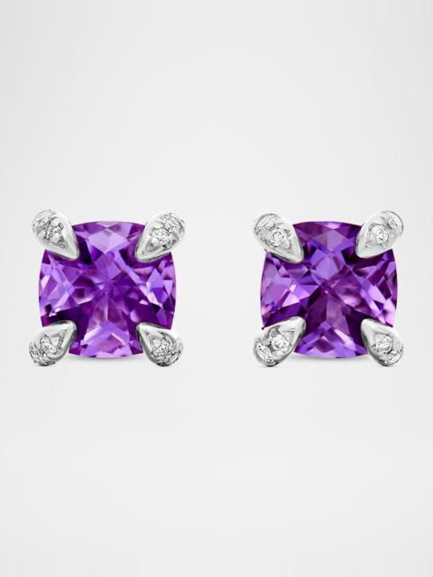 Chatelaine Stud Earrings with Gemstsones and Diamonds in Silver, 6mm