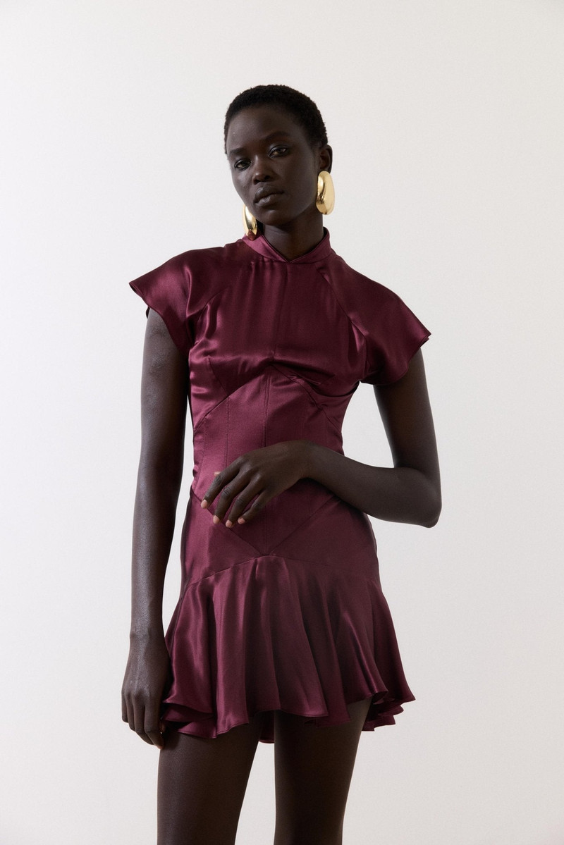 ALIZEE MINI DRESS IN EARTH SILK SATIN