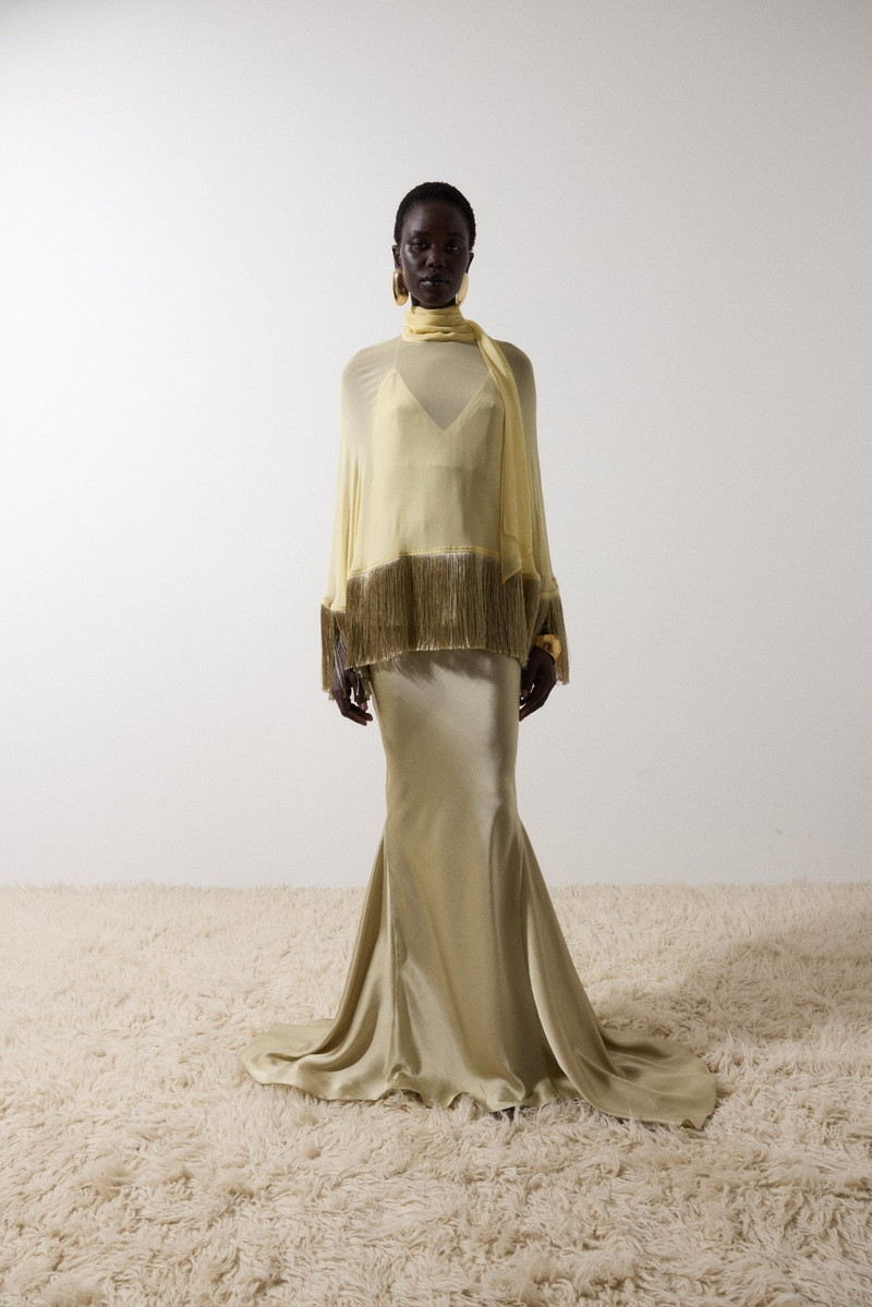 PRECIOSO CAPE IN EARTH SILK CHIFFON