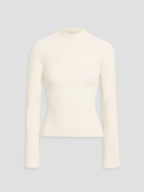 Paola poplin-paneled striped cotton and wool-blend turtleneck sweater