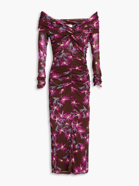 Clementine ruched floral-print stretch-mesh midi dress