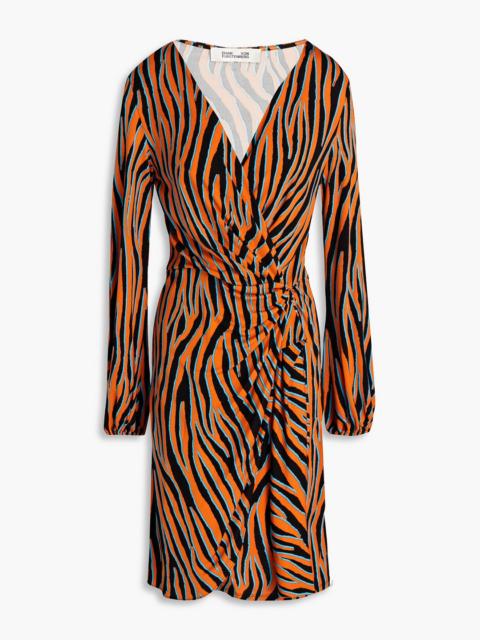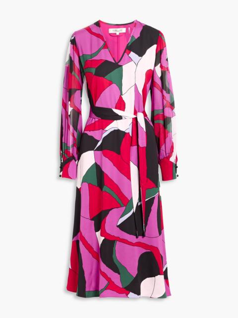 Bella wrap-effect ruffled printed silk crepe de chine midi dress