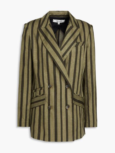 Madison double-breasted striped cotton and linen-blend blazer