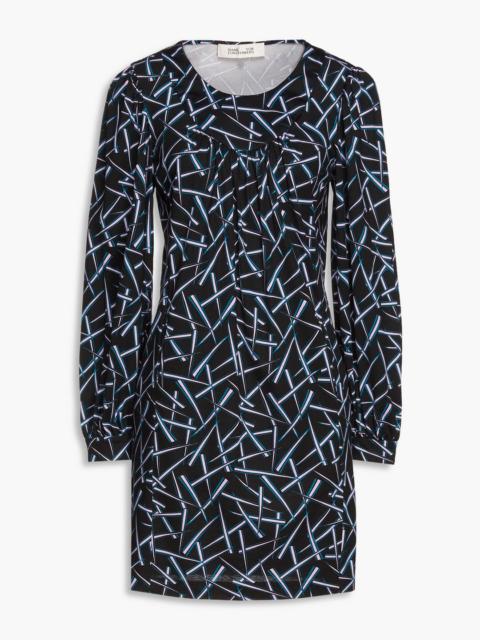 Noelle gathered printed silk and cotton-blend jersey mini dress