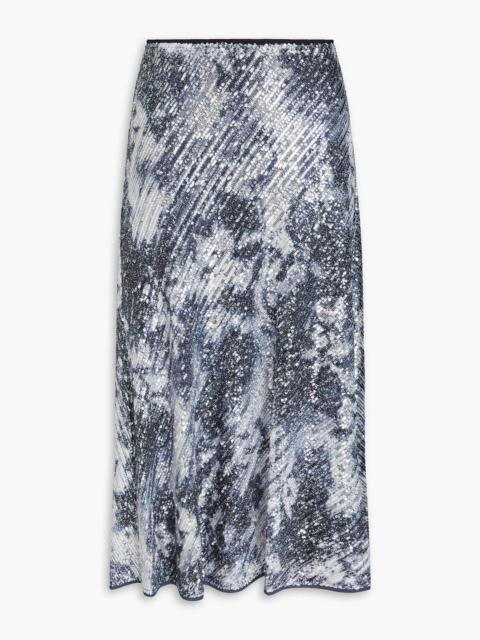 Araminta sequined printed stretch-mesh midi skirt