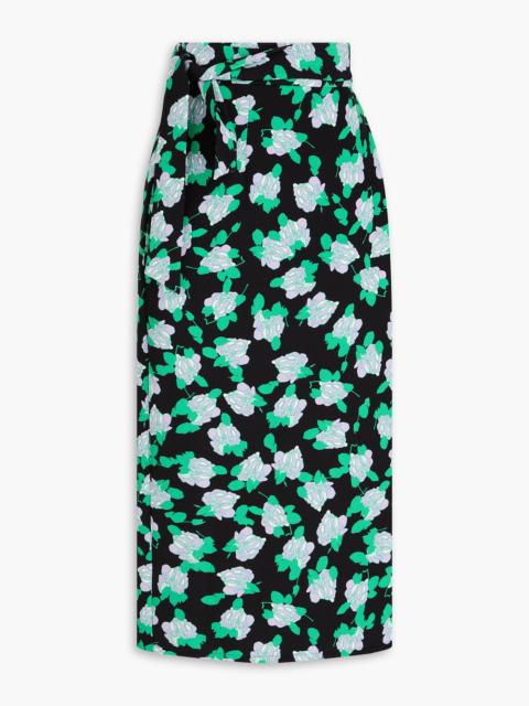 Elma floral-print cady midi wrap skirt