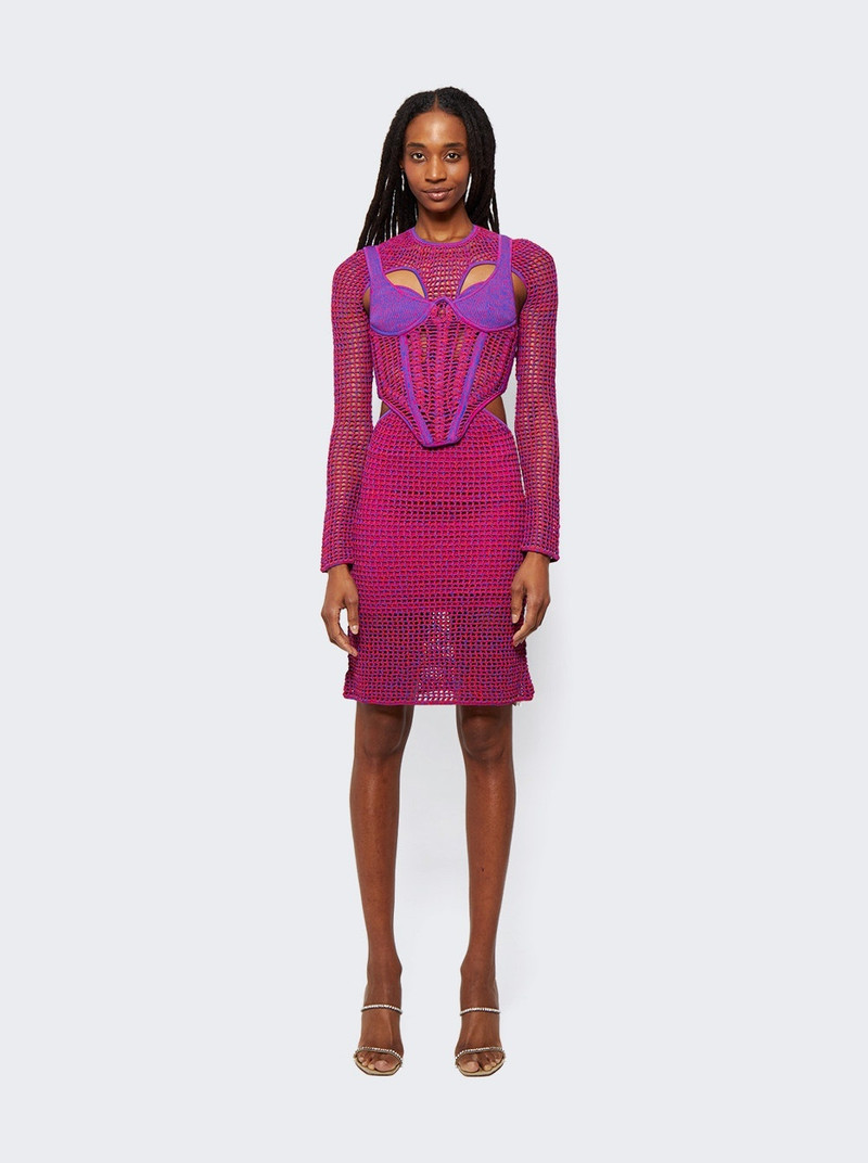 Stirrup Crochet Mini Dress Fuschia