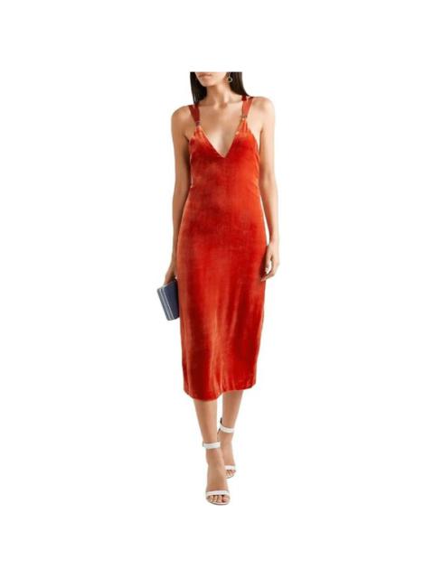 Dion Lee Dress Orange Velvet Mesh Straps V Neck Plunge Midi Slip Sz 4 NWT