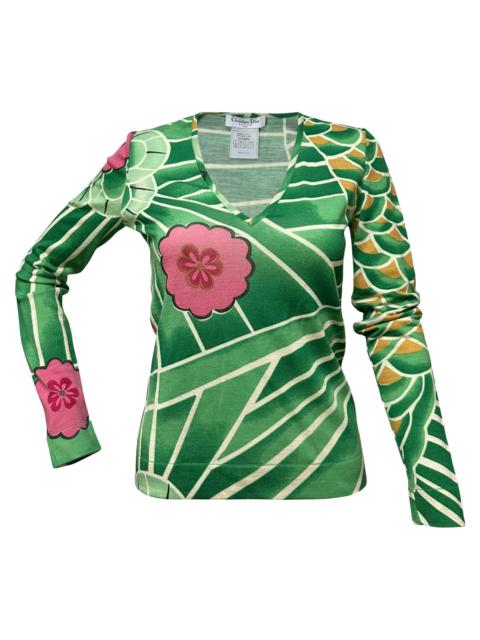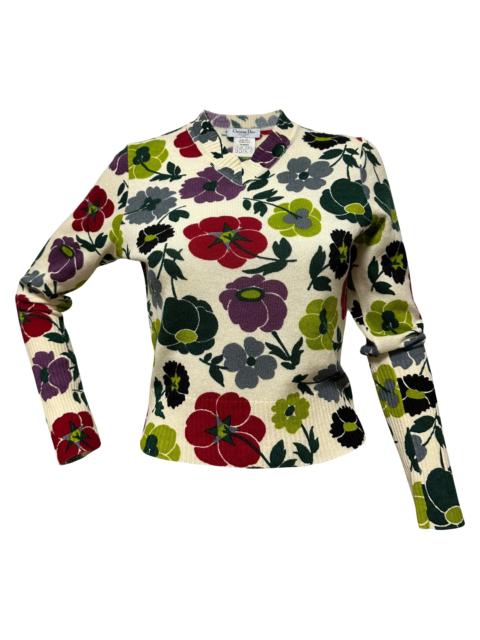 CHRISTIAN DIOR Fall Winter 2001 V-neck Floral Print Knit Sweater