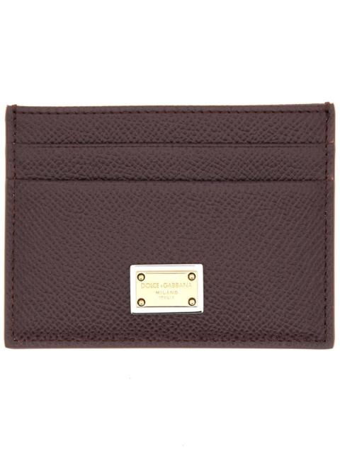 Dolce&Gabbana Bordeaux Leather Cardholder With Logo Plate Women