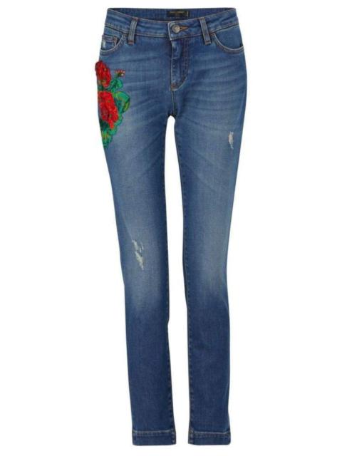 Dolce & Gabbana Jeans Embroidered Petals Denim Blue