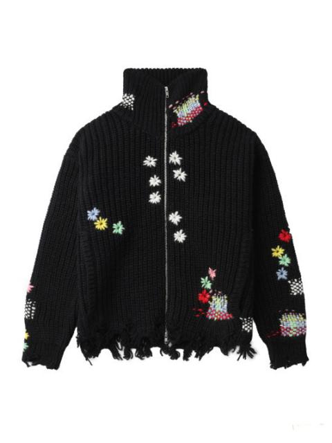 - doubletBLACK DARNING CUT OFF DRIVERS SWEATER