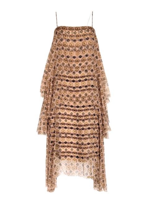 Dries Van Noten Women Brown Printed Mesh Layered Midi Dress<Br/>