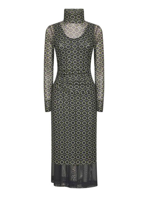 Dries Van Noten Women Green Printed Mesh Layered Midi Dress