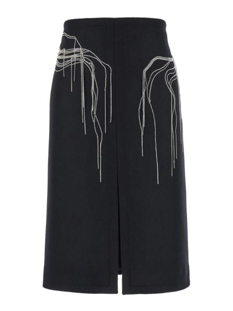 Dries Van Noten Women 'Shelda' Black Midi Skirt With Maxi Beaded Embellishments In Wool Blend Woman