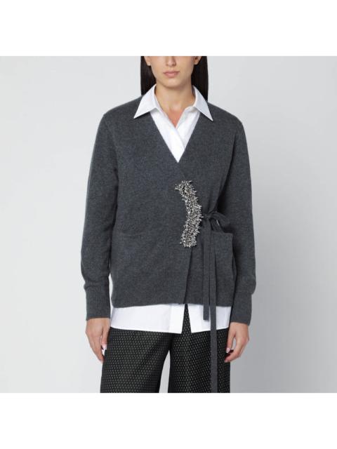 Dries Van Noten Grey Cashmere Cardigan With Brooch Detail Women