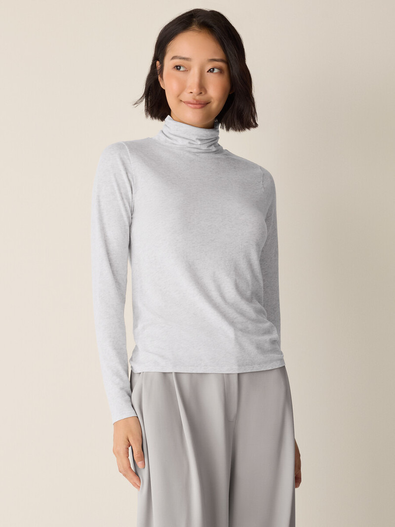 Mélange Sheer Cotton Blend Knit Turtleneck Top