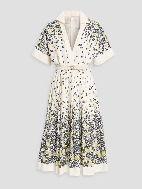 Pleated embellished crepe de chine midi dress