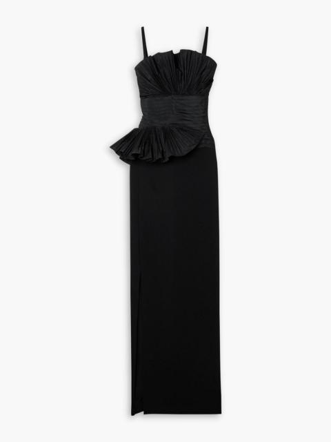 Pleated taffeta and crepe gown