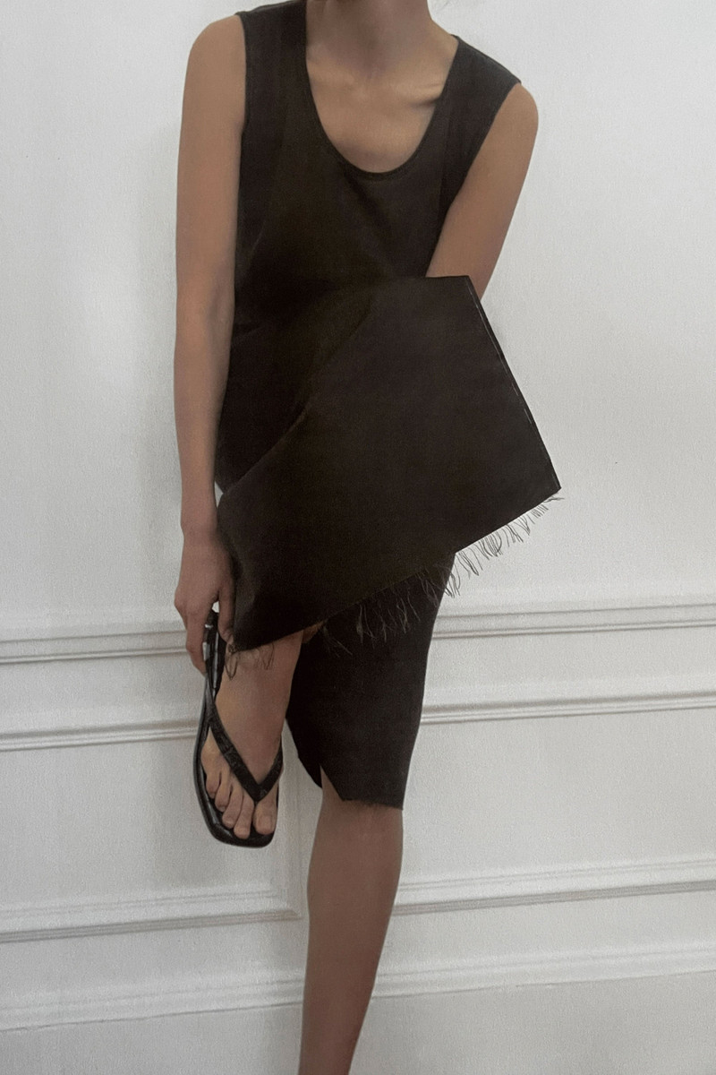 KNOT POOL SLIDE IN BLACK NAPPA AND RUBBER