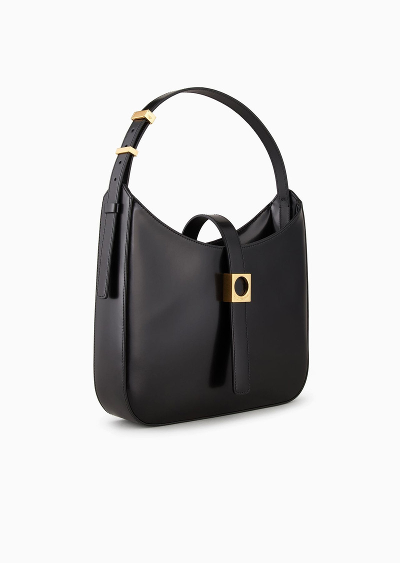 Leather hobo shoulder bag with eagle buckle