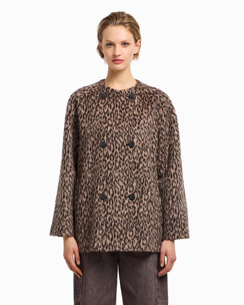 DOUBLE-BREASTED ANIMAL-PRINT WOOL-BLEND PEA COAT