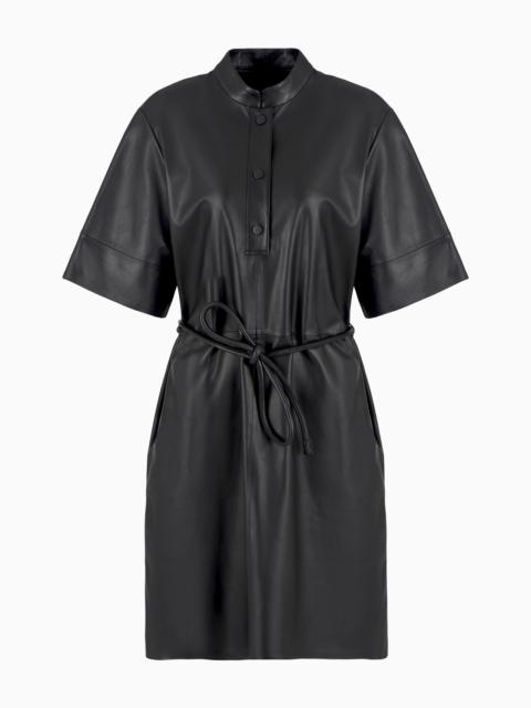 SHORT-SLEEVED DRESS IN NAPPA LAMBSKIN