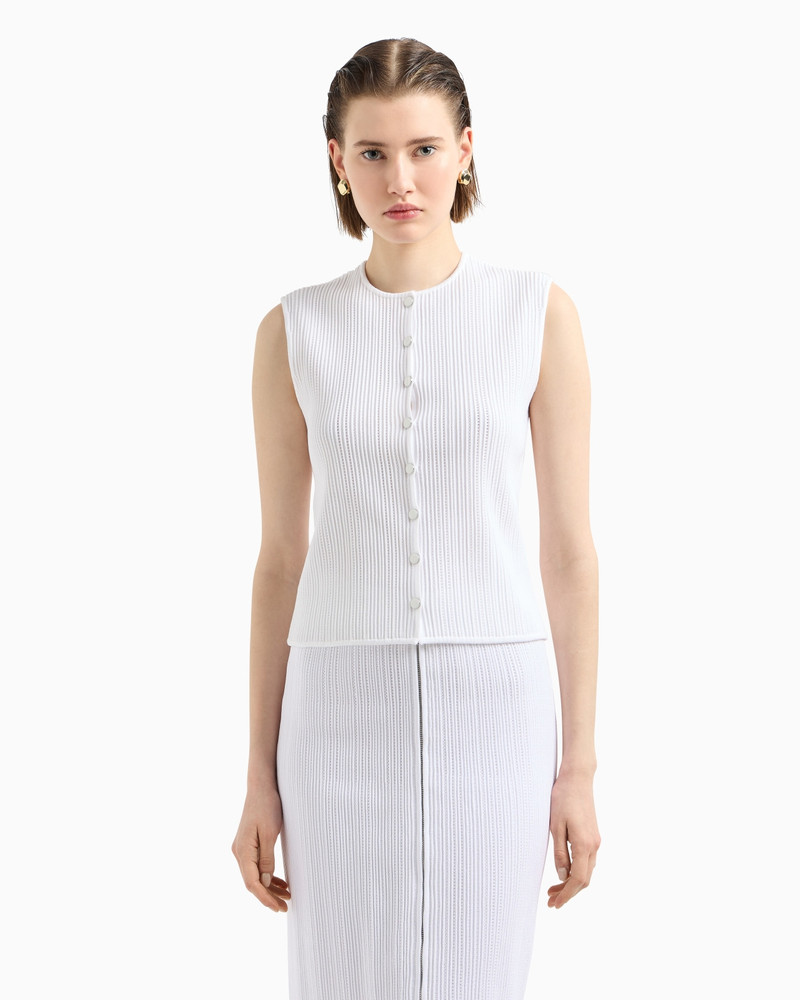 SINGLE-BREASTED WAISTCOAT IN A MÉLANGE WOOL-BLEND KNIT WITH A TEXTURED PATTERN