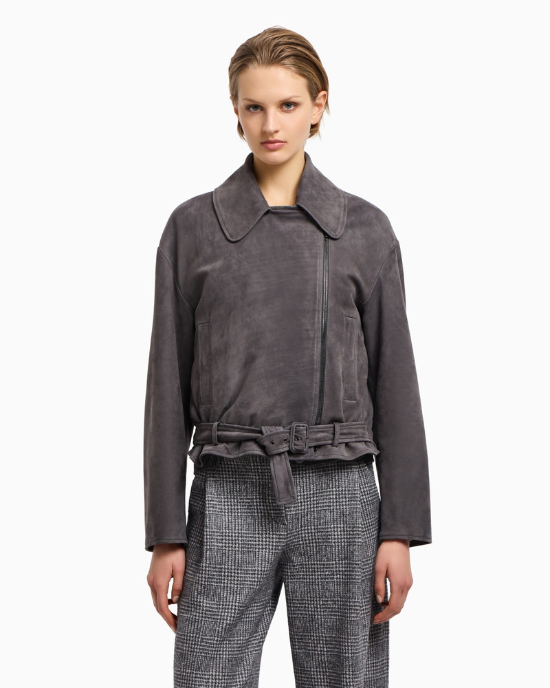 POLYGON CAPSULE COLLECTION LAMBSKIN NAPPA LEATHER JACKET WITH BELT