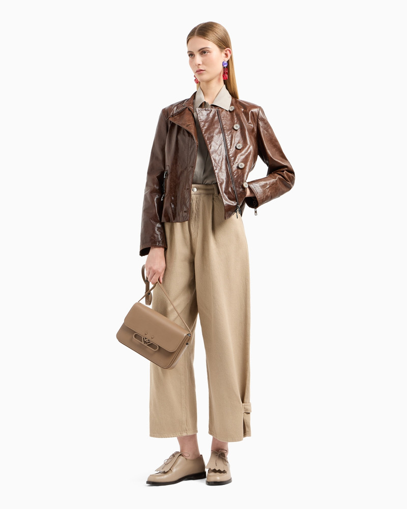 Cropped jacket with lapels in technical faille