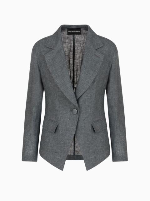 Single-breasted jacket with smocking details in washed linen