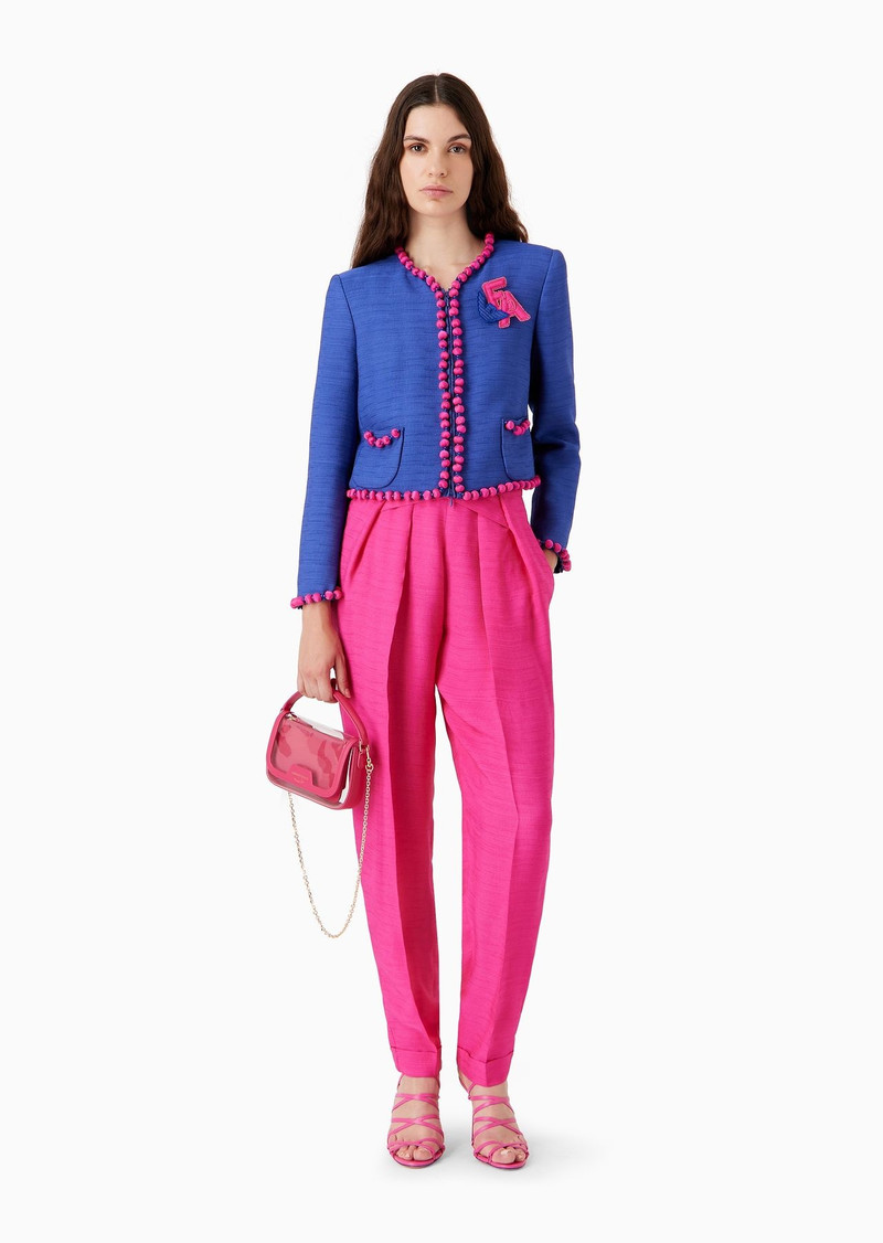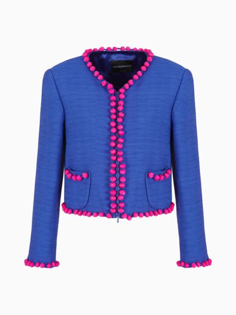 Viscose-crêpe jacket with pom-pom passementerie