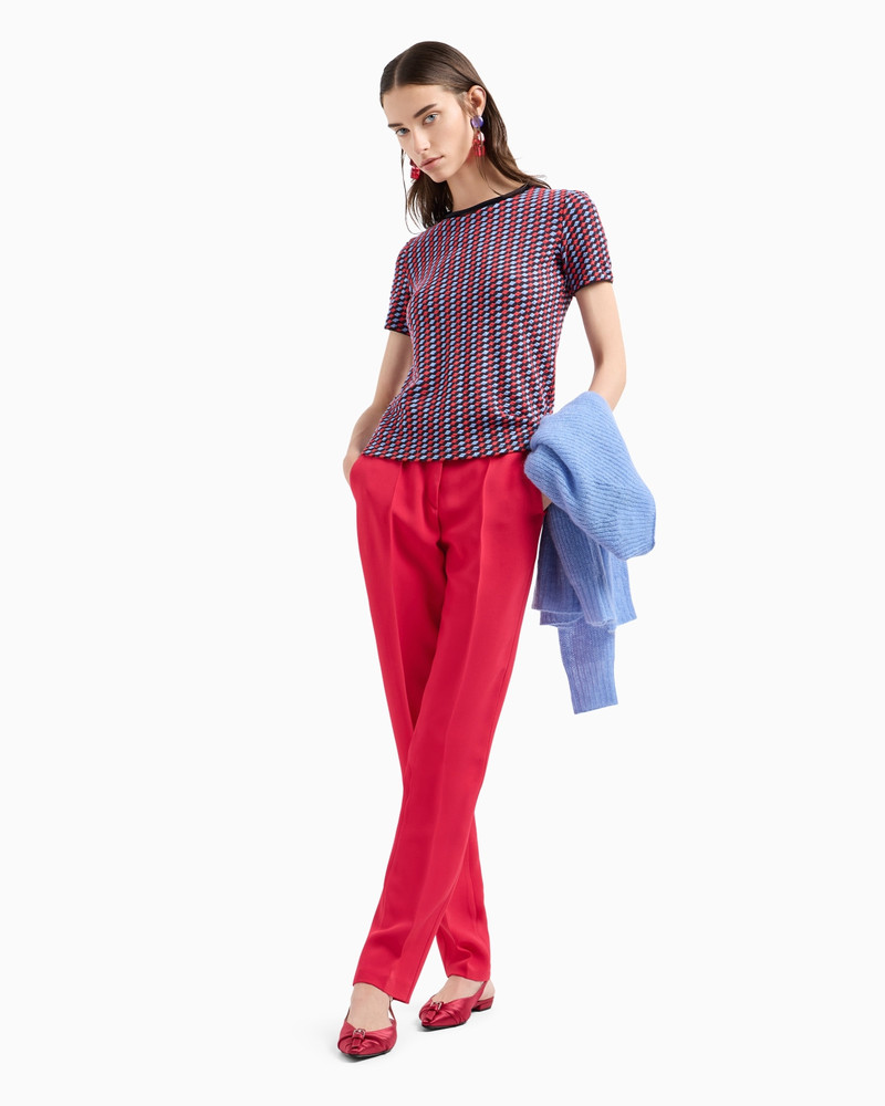 Oval-leg trousers in viscose jacquard with diagonal gradient-effect motif