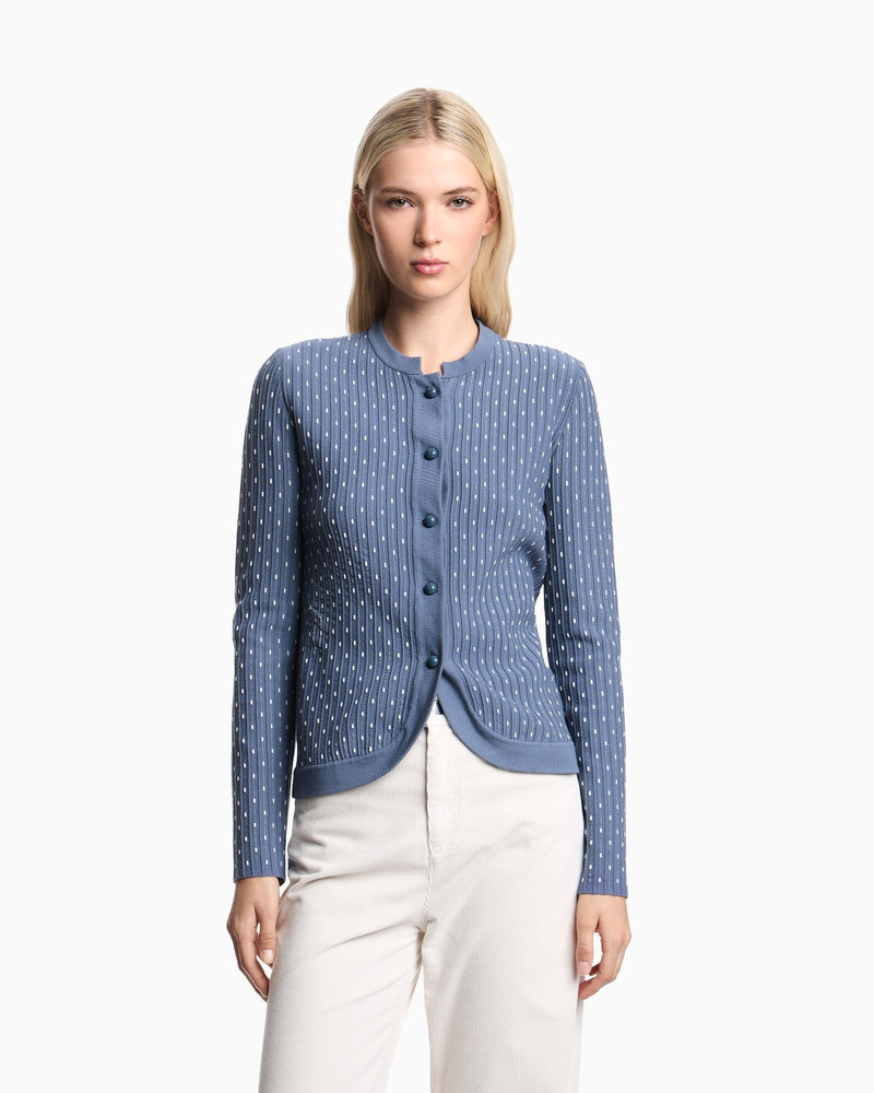 POLKA-DOT VISCOSE-JACQUARD PLAIN-KNIT CARDIGAN