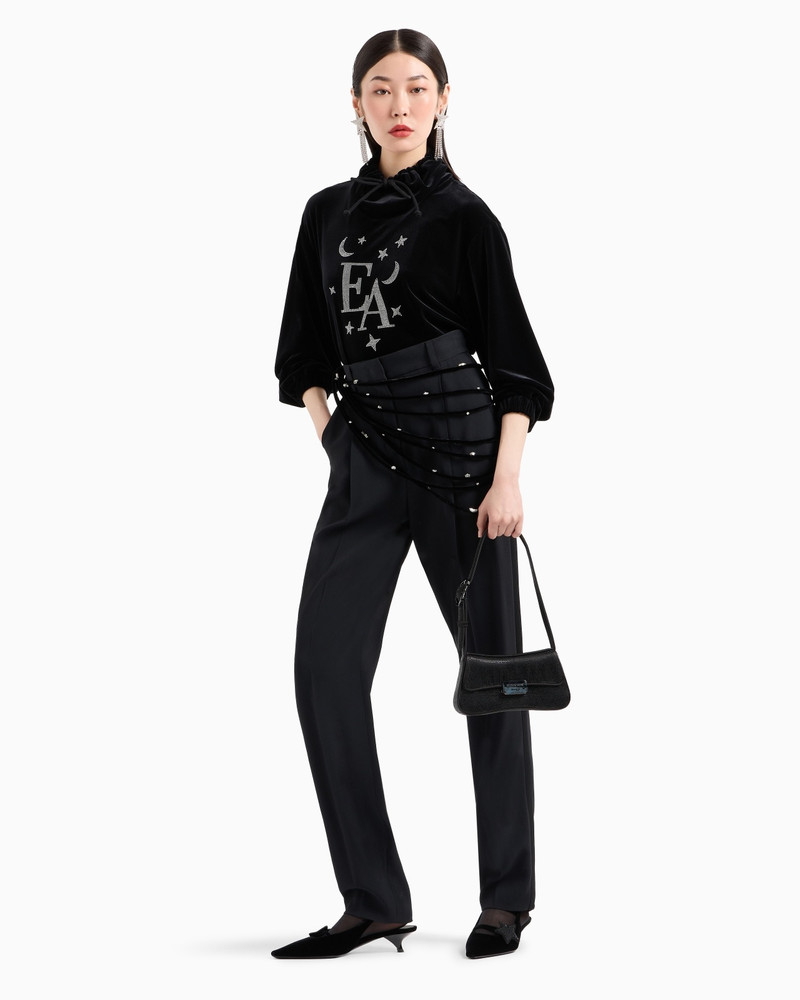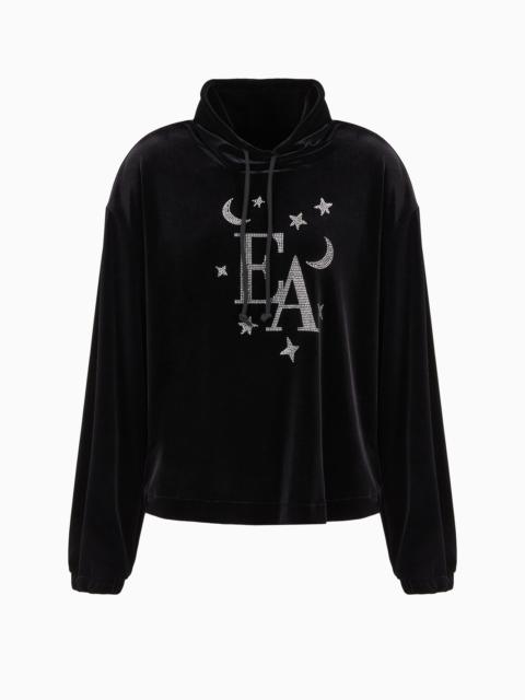 MOCK-NECK SWEATSHIRT IN CHENILLE WITH MOON AND STARS RHINESTONE LOGO