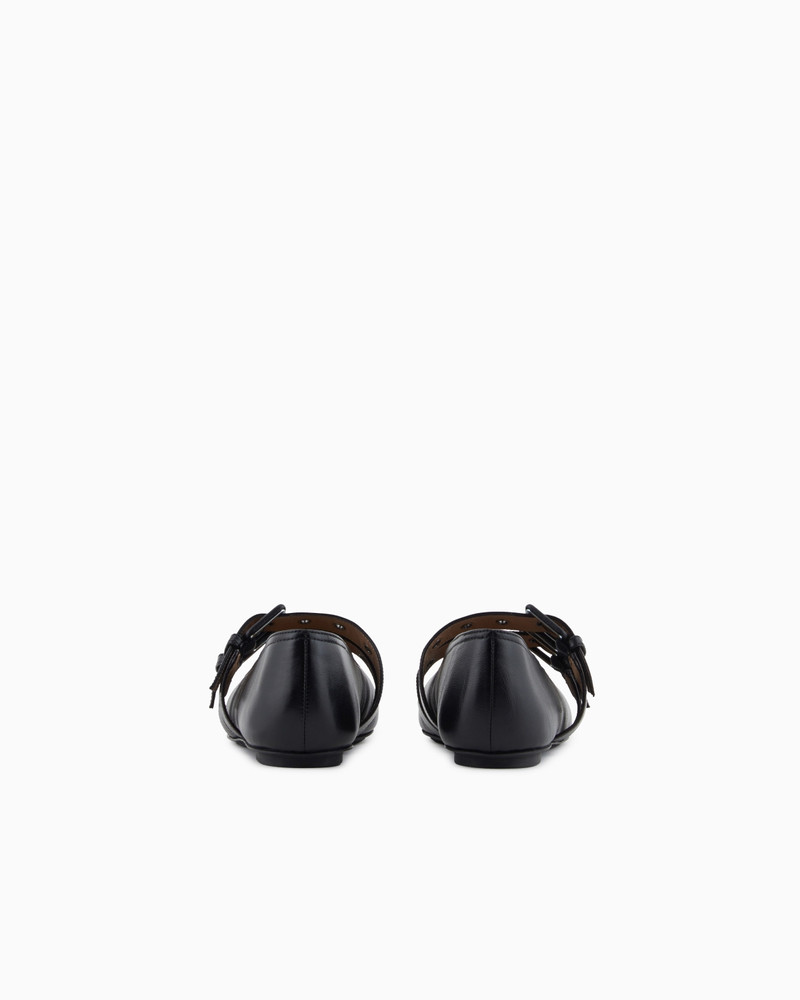 NAPPA-LEATHER SQUARE-TOED BALLERINAS WITH DOUBLE STRAP