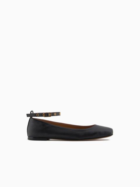 NAPPA-LEATHER SQUARE-TOED BALLERINAS WITH STRAP