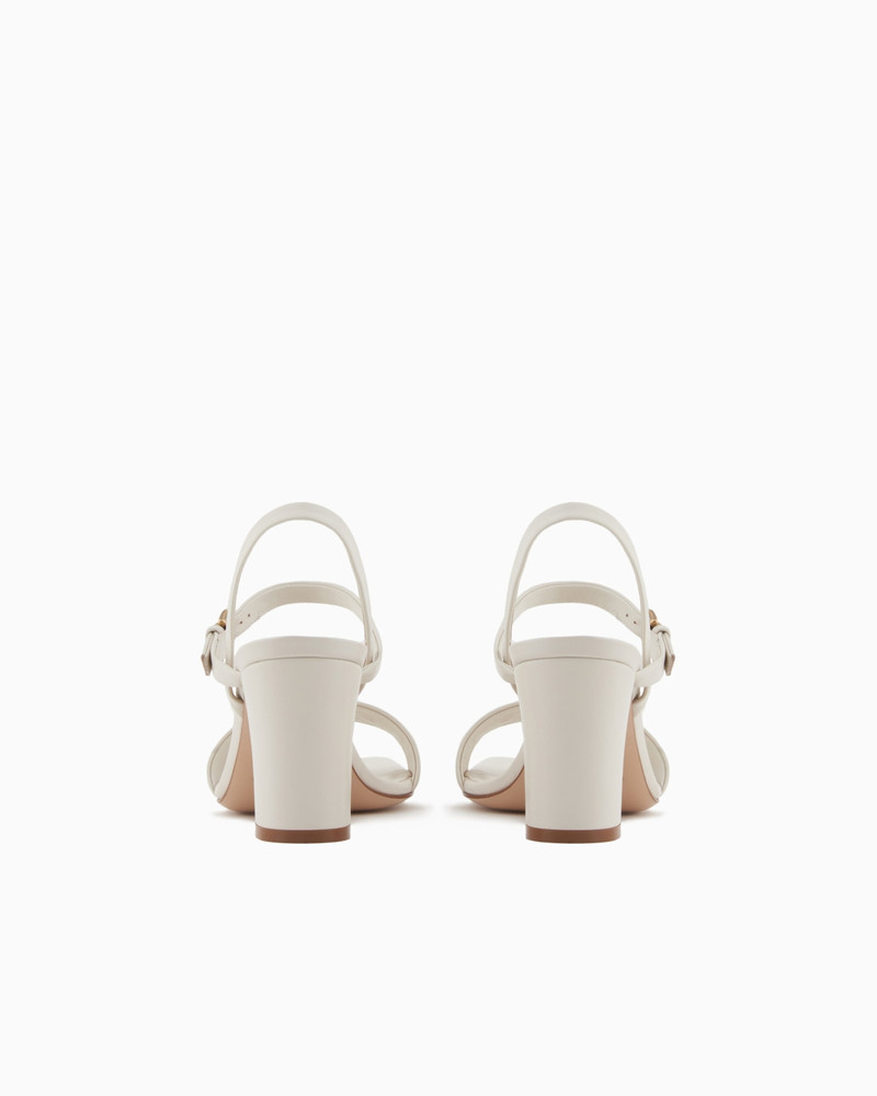 NAPPA-LEATHER HEELED SANDALS WITH EAGLE PLATE