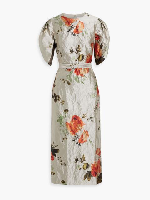 Crinkled floral-print satin-twill midi dress