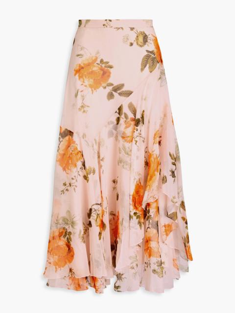 Floral-print silk-chiffon midi skirt