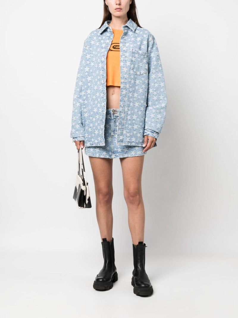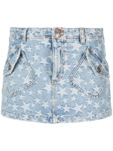 star-print washed-denim mini skirt