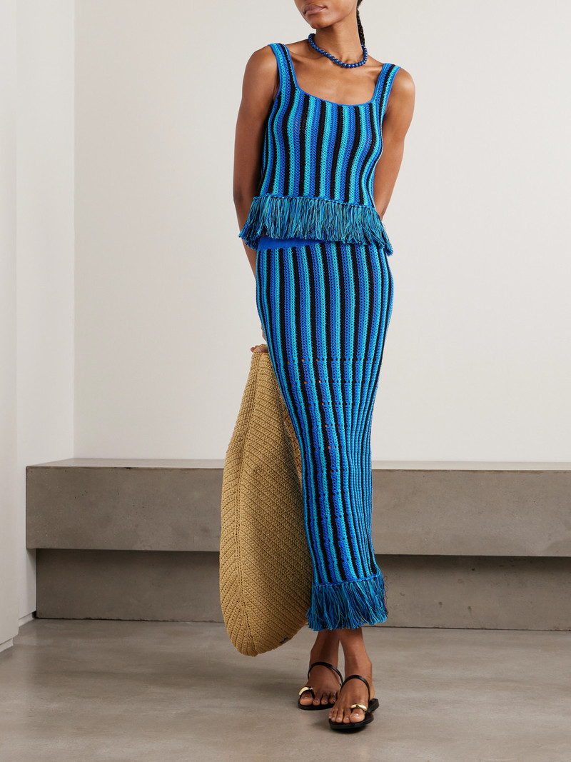 Misti Fringed Striped Crocheted Cotton Maxi Skirt