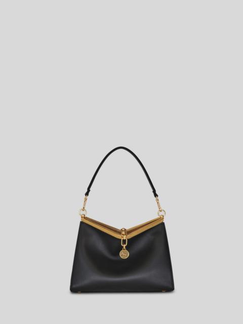 Etro Medium Vela Black Shoulder Bag With Logo And Pegasus Charm In Leather Woman