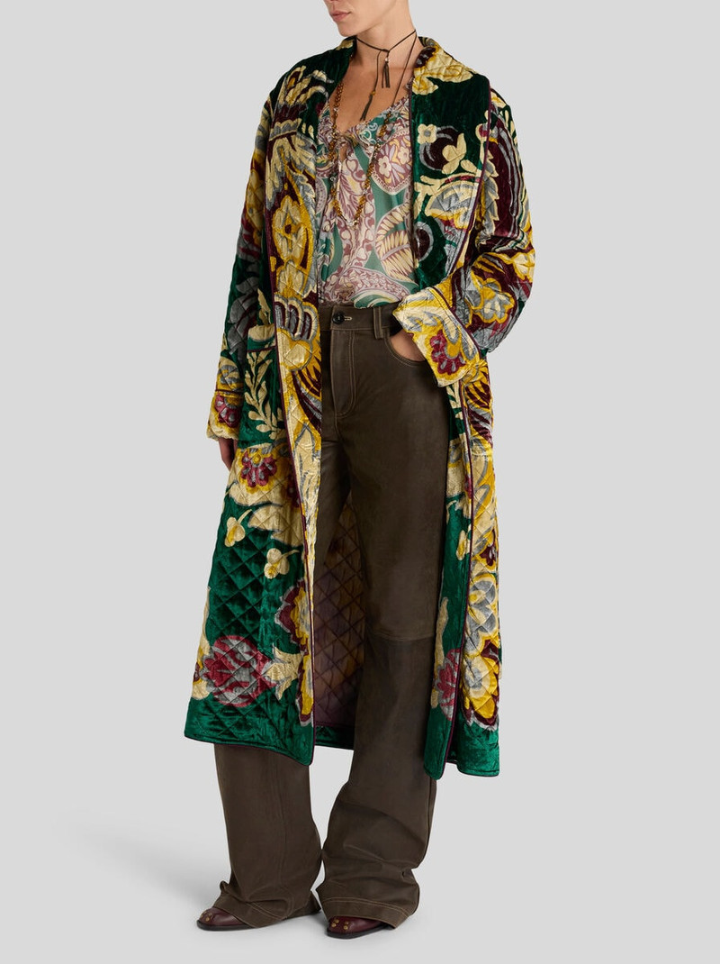 VELVET ROBE OVERCOAT WITH PLACED PRINT